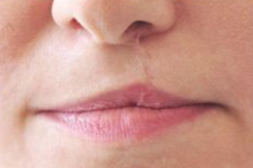 Nach einem Unfall oder einer Lippen-Gaumenspalten Plastik kann eine unschöne Narbe im Gesicht zurückbleiben. Hier kann mit einer Kombination aus Narben-Verblendung im umliegenden Hautton und einer optischen Lippenrekonstruktion in der Farbe des natürlichen Lippenrots ein tolles Ergebnis geschaffen werden.